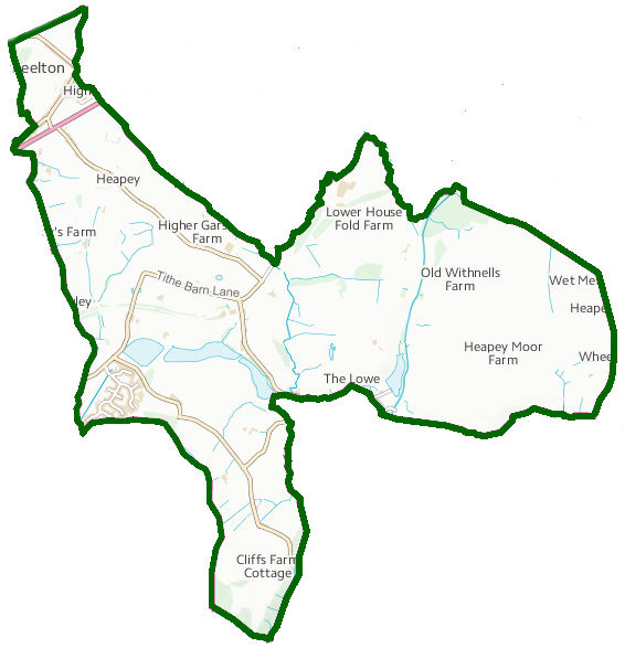 Heapey Parish Parish covers the settlements of Heapey, Heapey Chase, and part of Lower Wheelton, and includes the roads of Kenyon Lane, Blackburn Road (part), Chapel Lane, Tithe Barn Lane, Coppice Lane, Higher House Lane and Hollin Lane.
